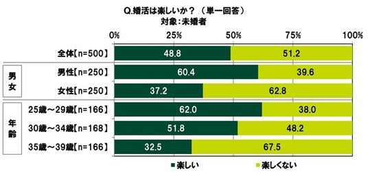- 「婚活は楽しい」婚活を行っている未婚者の48.8%、男性では60.4%