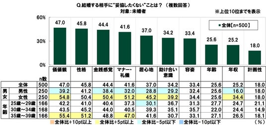 - 婚活している未婚者が結婚相手に妥協したくないこと 男性1位は「性格」、女性1位は「価値観」