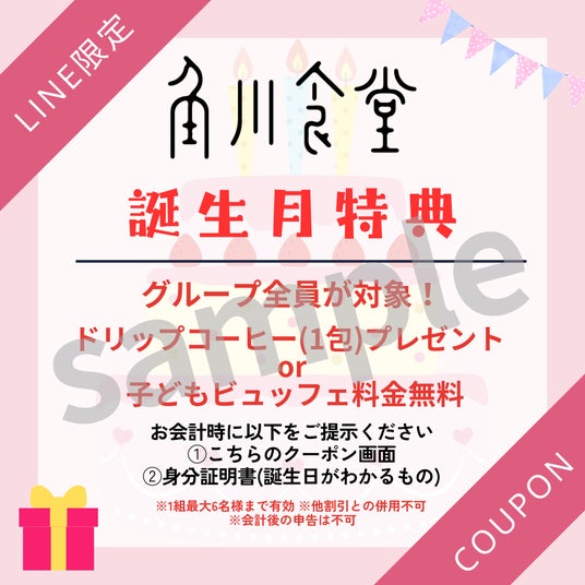 誕生月のお客様とお連れの方(1組最大6名様まで)