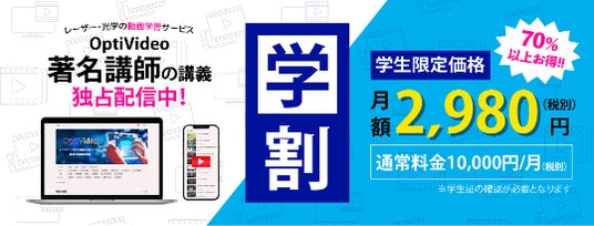 株式会社光響は、レーザー・光学の動画学習サービス「OptiVideo」において、学生向けの特別プラン「OptiVideo学割プラン」を2月17日より開始いたしました。