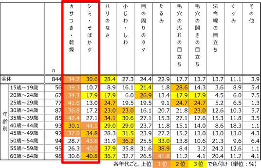 - 男性の老化、2大悩みは、「乾燥」と「シミ」