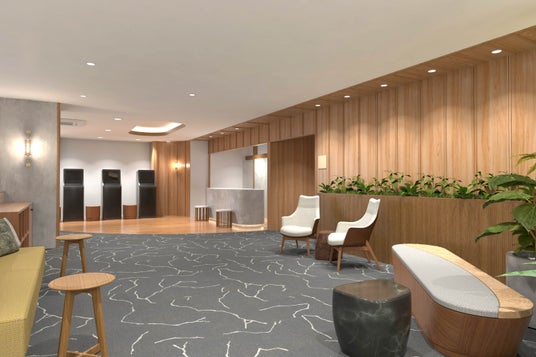 ロビー・エントランスは旅の高揚感や余韻が交差する場所。国の天然記念物に指定されている宮崎県の美しい自然景観の一つ”鬼の洗濯板”※2の大地に日向を感じる色味を取り入れ、ビジネスシーンにも合う落ち着きと上質な雰囲気を演出します。