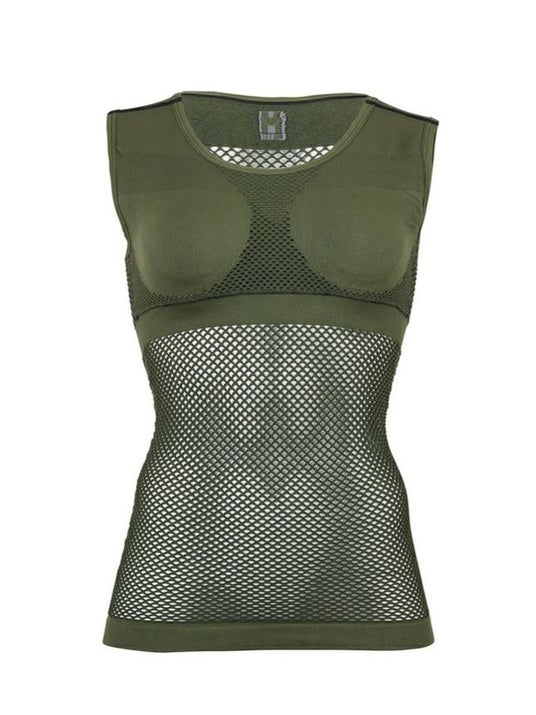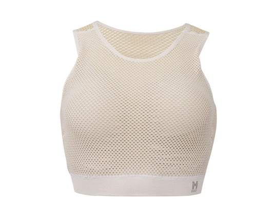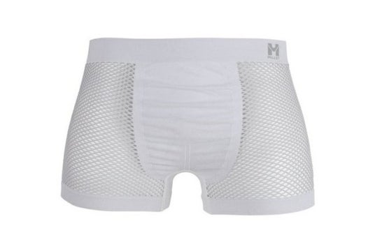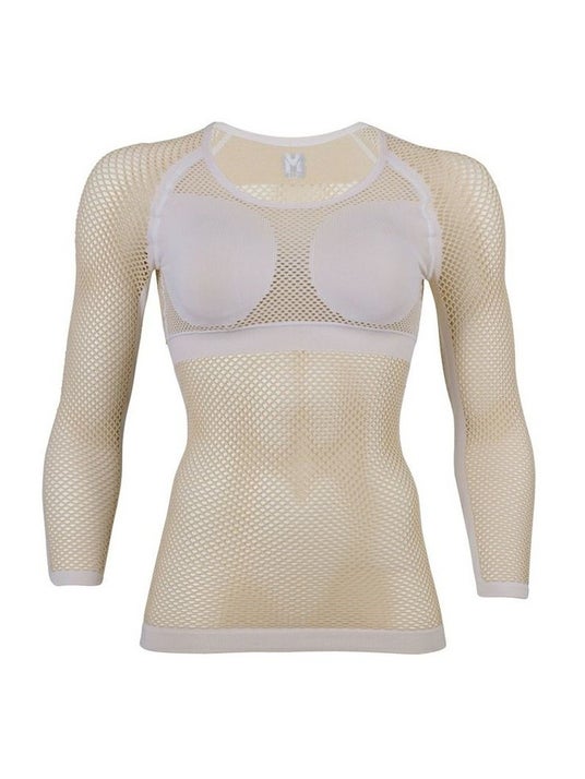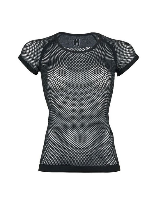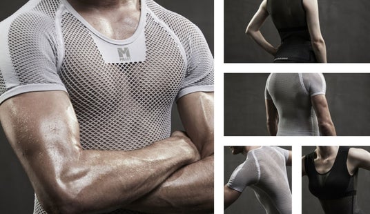 その特徴は、生地の「厚み」と大きな「網目」にあります。汗は、メッシュの繊維を通り、重ね着した上のウェアへと吸い上げられ拡散されます。