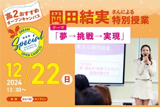 岡田結実が、特別講師に就任!「夢・憧れを仕事にする方法」を高校生に授業。12月22日(日)に開催【東京ビジネス・アカデミー】