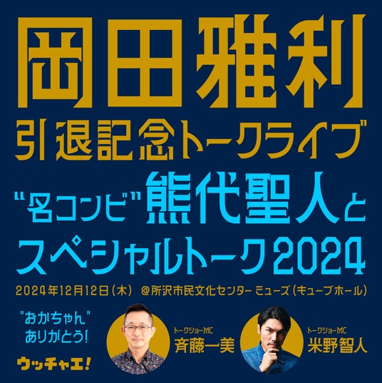 岡田雅利引退記念トークライブ!“名コンビ”熊代聖人とスペシャルトーク2024開催決定!