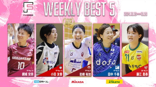 10月19日(土)~20日(日)に実施した女子Fリーグ2024-2025 ファイナルシーズン 第2節(第13節) 5試合の週間ベスト5を発表いたします。