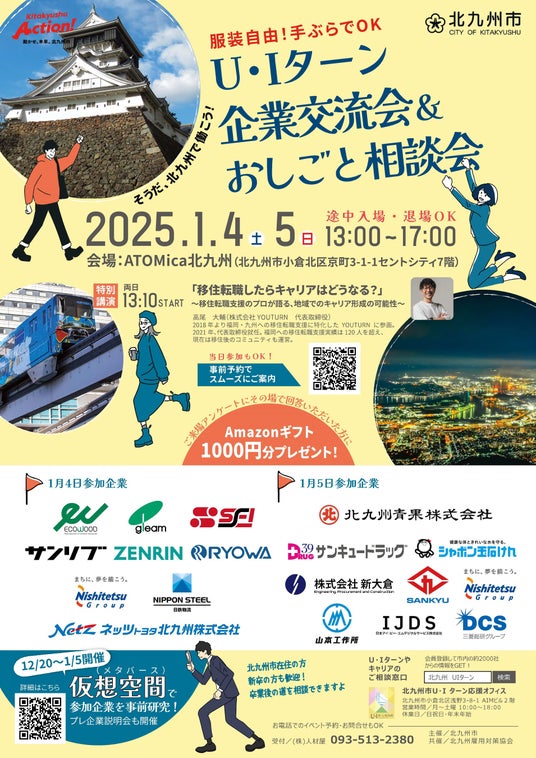 また、令和7年1月4日(土)、5日(日)にATOMica北九州でU・Iターン希望者向けの企業交流会と就職相談会を開催します。