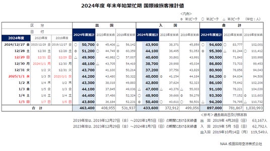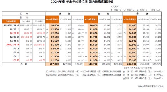 成田国際空港株式会社はこの度、年末年始期間中に成田空港をご利用になる旅客数の推計を取りまとめましたので、お知らせいたします。