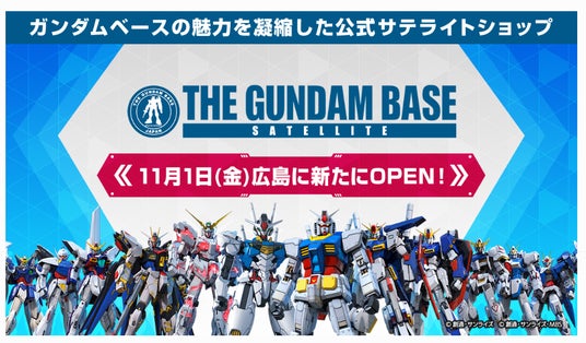 株式会社バンダイナムコアミューズメントは、株式会社BANDAI SPIRITSが展開する公式ガンプラ総合施設「THE GUNDAM BASE」のサテライト店舗「THE GUNDAM BASE SATELLITE HIROSHIMA」を2024年11月1日(金)にイオンモール広島府中(広島県安芸郡)にオープンします。