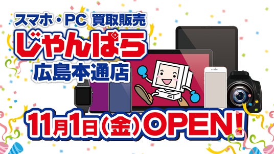 広島2店舗目!スマホ・PC等買取販売「じゃんぱら広島本通店」11月1日(金)グランドオープン!