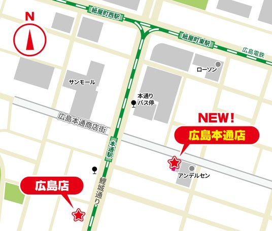 広島電鉄本通駅から徒歩約1分の好アクセス。中国・四国地方で最大の規模を誇る広島本通商店街へ出店し、広島を盛り上げます。