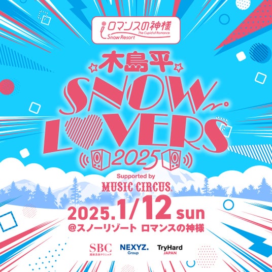 株式会社TryHard Japan(大阪市中央区)は、SBCリゾート木島平と株式会社MUSIC CIRCUS(東京都渋谷区)が2025年1月12日(日)スノーリゾート ロマンスの神様にて開催する、音楽イベント「木島平SNOW LOVERS 2025」のチケット販売開始、追加出演アーティストを発表いたします。
