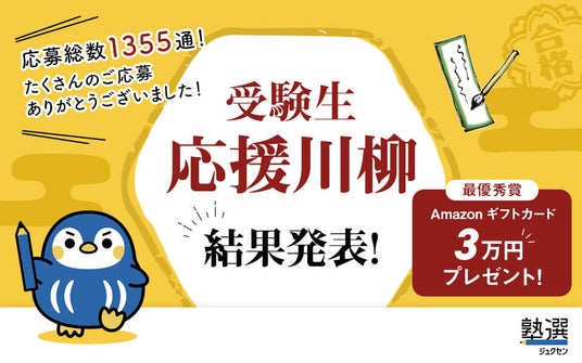 応募総数1,355通!日本最大級の塾検索サイト『塾選』が贈る「受験生応援川柳」の受賞作を発表