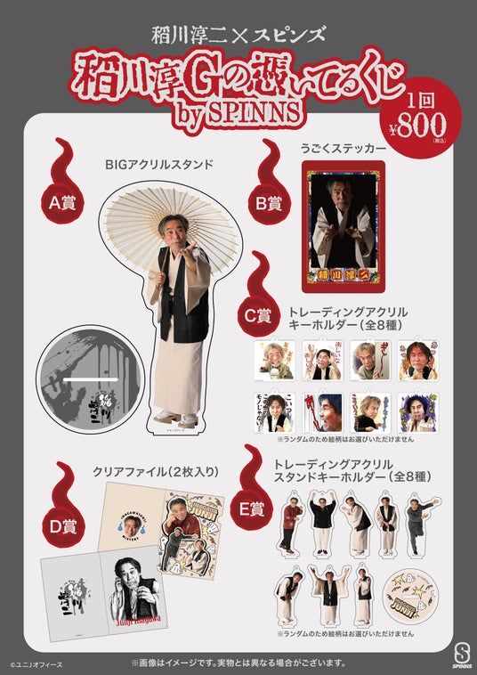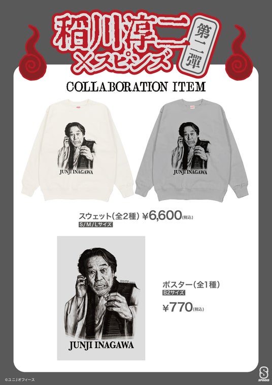 怪談界のスーパーレジェントとのコラボが好評につき第二弾決定!『稲川淳二』×『SPINNS』とのコラボレーションアイテム第二弾の発売決定!一部対象店舗限定で外れなしの「稲川淳Gの憑いてるくじ」も実施!?