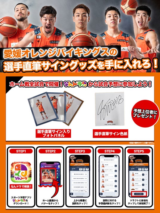 イノベーションの力で新たなスポーツ・エンターテインメントを創造し、まだ見ぬ感動と熱狂を提供するアプリ「なんドラ」を運営する株式会社なんでもドラフト(本社:東京渋谷区、代表:森井啓允)は、B2リーグ 西地区所属の愛媛オレンジバイキングス(愛称:バイクス)の12月18日(水)のホームゲーム、熊本ヴォルターズ戦を対象とした、活躍選手と試合展開の予想を開催します。