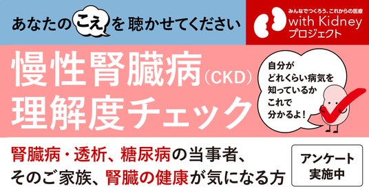 慢性腎臓病(CKD)という病気の理解度を捉えるアンケートを開始