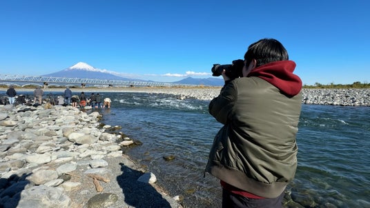 11、12月の風景を収める旅だが、実は季節度外視で撮っておきたい車両があるという。それは、2025年1月をもって引退する検査専用車両・ドクターイエロー。有名な撮影スポットがある富士川駅へ向かう。駅に着くと、「時間あるんで、朝ご飯行きます?」と、いつものせわしない様子とはひと味違う、余裕の行動。1回で2度おいしい、海鮮朝食に舌鼓を打つ。そして、スポットに向かう途中には、思いも寄らなかったレア車両に出会い…。「幸先いいというか、今日いい気がする」と上機嫌だ。