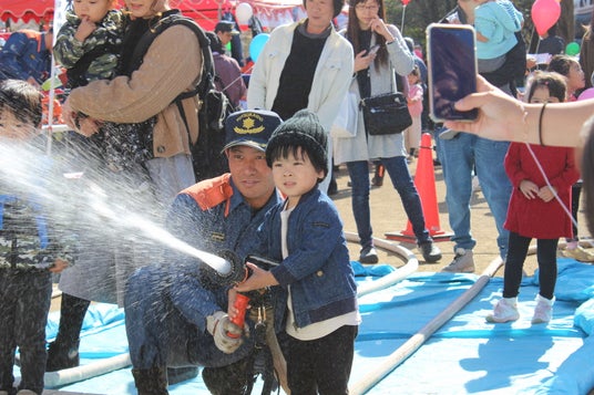 ・他にも、ヨーヨー風船配布や煙体験、放水体験、車両乗車コーナーなど親子で楽 しめるブースを多数設けています。