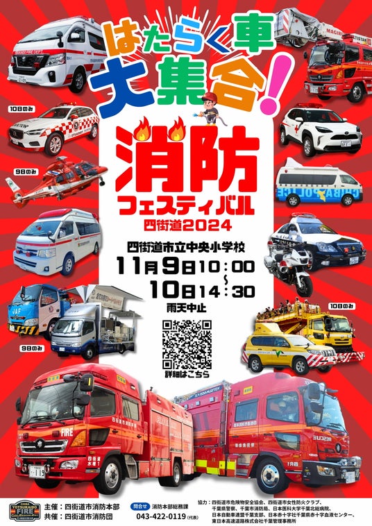 令和6年11月9日(土)・10日(日)、「消防フェスティバル四街道2024」を四街道市立中央小学校にて開催します。