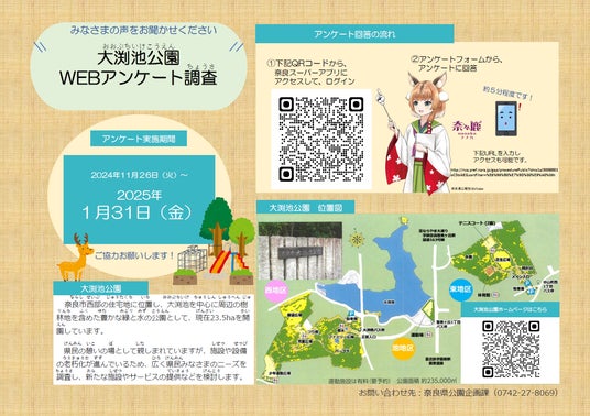 新たな施設整備や施設の更新について、奈良県/大渕池公園WEBアンケート調査を実施します!