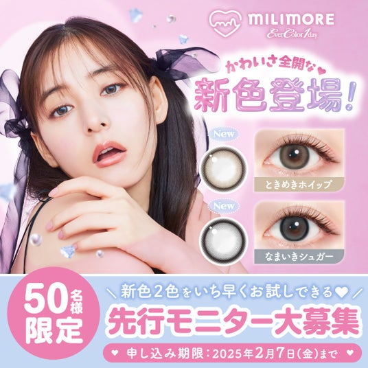 新木優子イメージモデル エバーカラーワンデーミリモアから「かわいさ全開(ハート)きゅる盛り」な新色が2色登場!ふわ太フチ×映え発色のトレンドデザイン