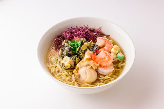 今月は北海道襟裳分屯基地の「襟裳分屯基地オリジナルラーメン」。北海道産の灯台ツブや日高昆布、ホタテ、エビ、ふのりなどからしみ出るだしはうまみたっぷり! 究極の海鮮塩ラーメンです。