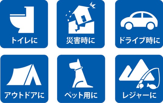 地震や台風などの自然災害、断水時に役立つ防災用トイレとしてはもちろん、ドライブ時やアウトドア、登山や釣りなどのレジャーの不安も解消します。渋滞時や嘔吐のエチケット袋として、ペット用としても活躍します。