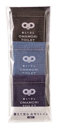 防災トイレに見えない、デニム調のカジュアルでお洒落なお守りデザインを採用し、1回分の個包装タイプにしました。