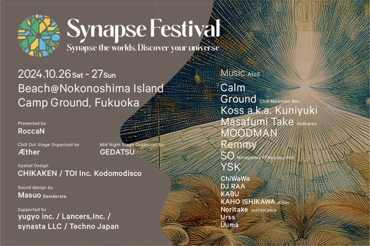 10月26日・27日に福岡県の博多湾に浮かぶ「日本でもっともチルな島」能古島にて音楽やウェルネス、アートワーク体験などの様々なコンテンツを楽しめる『Synapse Festival』を開催いたします。