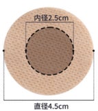 日本人男性の乳輪の平均サイズは平均2.5cmと言われています。ジェントルパッチは他社製品に比べてやや大きめな内径2.5cm、直径4.5cmサイズ、デリケートなバストトップをすっぽり覆い、優しく保護します。
