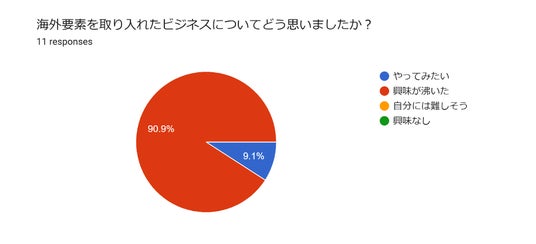 今回の講義では、海外要素を取り入れたビジネスについて、約9割以上の学生が「興味が湧いた」と回答し、海外ビジネスへの関心の高さが伺えました。