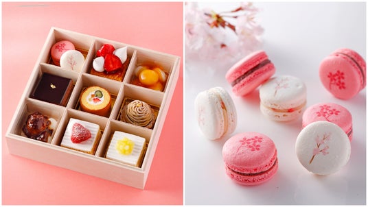 春のお手土産やお花見シーズンにぴったりのスイーツも勢揃い。ホテルの看板ペストリーブティック「パティスリーSATSUKI」では、塩漬けした桜と桜風味のこしあんをサンドした『新桜マカロン』や、9種の“口福スイーツ”を詰め込んだ『SATSUKIスイーツBOX』が登場。“スーパーシリーズ”をはじめとする人気スイーツが、ミニサイズで贅沢に並ぶスイーツBOXは、ホームパーティやピクニックに最適です。