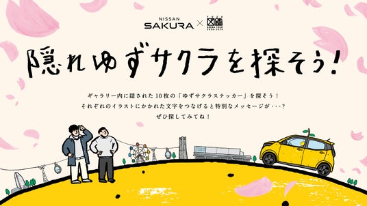 日産グローバル本社ギャラリー内に計10ヶ所貼られている「ゆずサクラ」ステッカーを探す企画「隠れゆずサクラを探そう!」を開催します。各ステッカーに描かれた10個の文字をつなげると1つのメッセージになります。ぜひギャラリー内を散策して、隠れゆずサクラを探してみてください。