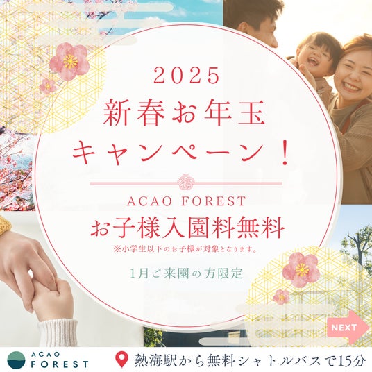 小学生以下のお子様の入園料を通常1,000円のところ、1月に限り無料にてご案内いたします。さらにACAO FOREST内では「こどもおみくじ」も開催。見事大吉を引き当てたお子様には、素敵なプレゼントもご用意しております。