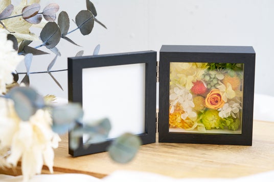 概要:写真立てとフラワーアレンジメントが一つになったフォトフレームボックス。お花の種類や配置によっていろんな表情をお楽しみいただけます。当日撮った写真を印刷してお渡ししますので、思い出と一緒にお持ち帰りください。