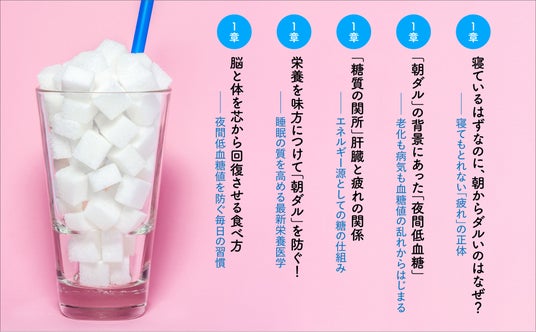 この本では、糖質が「朝ダル」とどのように関係しているかを説明したうえで、夜間低血糖を起こさない食べ方のコツをご紹介していきます。