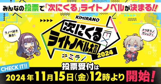 株式会社KADOKAWA(本社:東京都千代田区、取締役 代表執行役社長 CEO:夏野剛、以下KADOKAWA)が運営するライトノベル・新文芸のレコメンドサイト「キミラノ」は、「次にくるライトノベル大賞2024」のノミネート作品を公開し、投票の受付を開始いたしました。