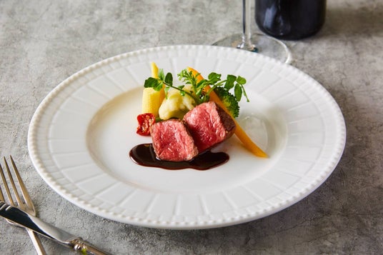 希少品種褐毛和牛の赤身の旨味を味わえる伝統の仕上げにルッコラとパルミジャーノチーズを合わせ、香草ソースとバルサミコソースでお召し上がりいただく「熊本県産赤牛のタリアータ」等、メイン料理もぜひ。