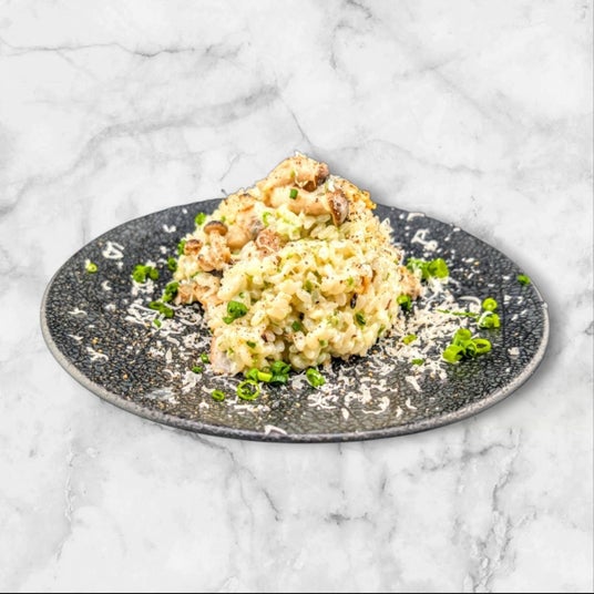 あさりの香りを引き立て、白ワインでキレのある味わいを演出。キノコとごぼうを加えて香りと食感をプラスし、クリームソースと調和させました。仕上げに生海苔を加え、魚介の風味を引き立てるとともに、バターとチーズで濃厚なコクをプラス。心温まるチーズリゾットです。