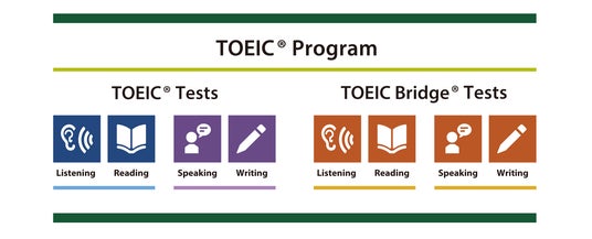 TOEIC(R) Listening & Reading Test、TOEIC(R) Speaking & Writing Tests、TOEIC Bridge(R) Listening & Reading Tests、TOEIC Bridge(R) Speaking & Writing Testsの総称。4つのテストを合わせたTOEIC(R) Programは世界160カ国、約14,000団体で実施されている。