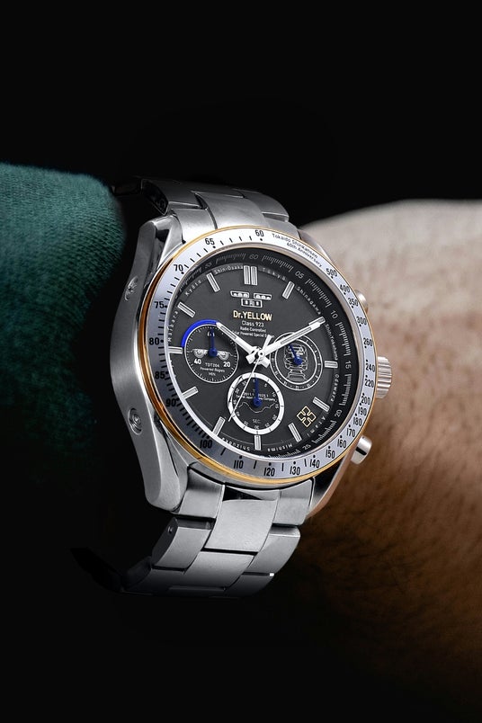 2025年1月にJR東海が保有する「923形ドクターイエロー(T4)」の運行が終了するのに合わせ、限定2025点での生産。裏蓋には限定版の証であるエディションナンバーと「東海道新幹線開業60周年」の刻印が施されています。さらに、ドクターイエローのカラーリングをイメージした専用ウォッチボックスには「Dr.YELLOW Class 923」の名前が銀箔押しで刻印され、特別感を演出しています。フルカラー写真入りのギャランティカードも付属し、コレクションアイテムとしての価値も高い商品です。