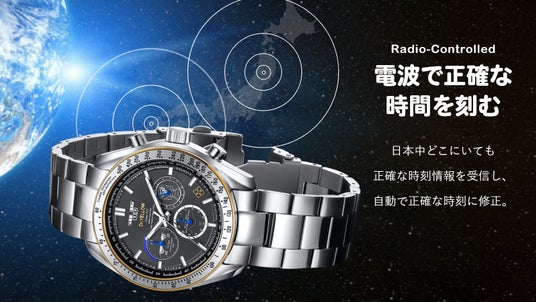 「新幹線のお医者さん」と呼ばれ、見ると幸せが訪れると言われ親しまれてきた「ドクターイエロー」。2025年1月に運行を終了するT4編成とのコラボレーションを実現した本製品は、ソーラー充電により電池交換が不要で、環境にも配慮した設計となっています。また、福島局(40kHz)と九州局(60kHz)の2ヶ所の標準電波を受信し、日本全国どこでも正確な時刻を自動で修正します。