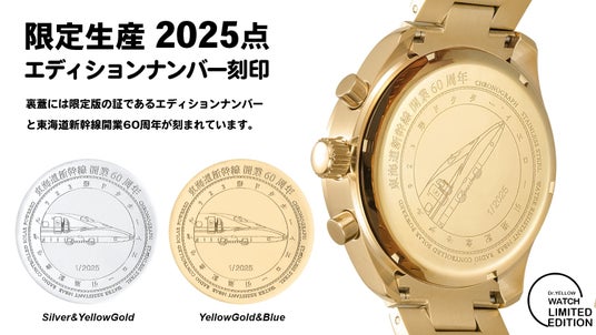 特別限定生産2025点。裏蓋には限定版の証であるエディションナンバーと「東海道新幹線開業60周年」の文字が刻まれています。