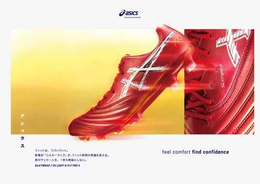 アシックスジャパンは、アッパー(甲被)に柔軟性、耐久性に優れた新素材「SILKYWRAP(シルキーラップ)」を採用したサッカー用スパイクシューズ「DS LIGHT X-FLY PRO 3(ディーエスライトエクスフライプロ3)」を、12月12日からアシックスオンラインストア、全国のスポーツ用品店などで順次発売します。