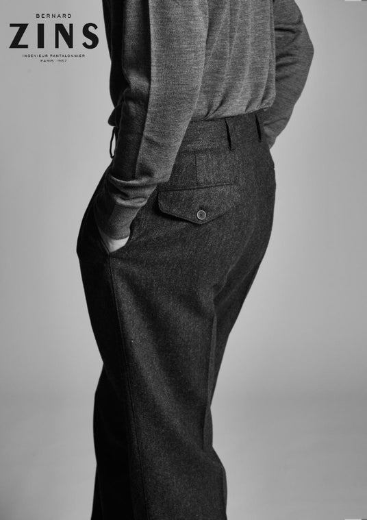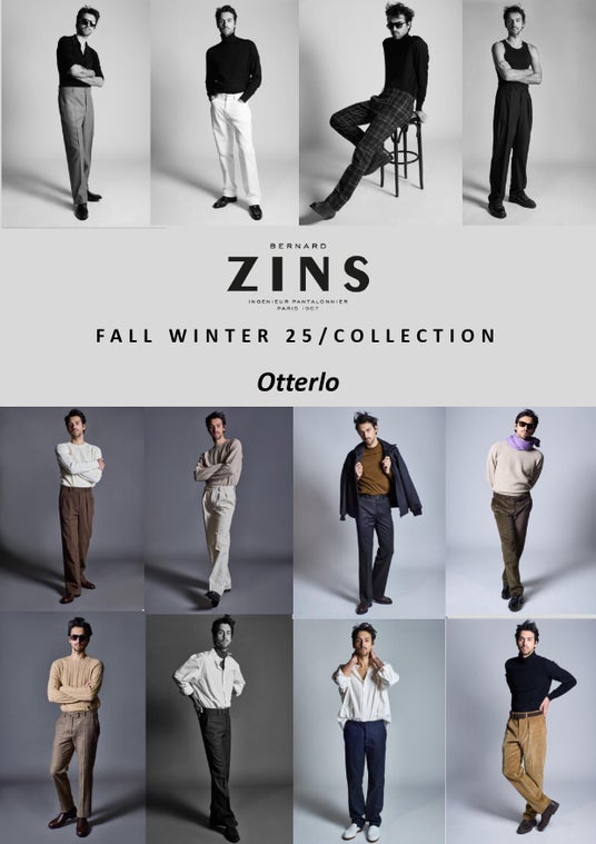 【BERNARD ZINS】 1967年の創設以来、Bernard Zinsは、フランスのパンツを体現してきました。イノベーション、素材の選択、精密な裁断、クオリティの高い縫製:これらのバリューを元にノウハウを確立。”パンツのエンジニア” として名を馳せたブランド創設者Bernard Zins氏のビジョンに則った、伝統とモダンの完璧な融合が実現されています。 <パンツの解剖学> パンツメーカーのパイオニアであるBernard Zins氏は、テーラーの職人技と工業生産のメリットをどのように保管両立させるべきか、いち早く理解した人物です。彼が次から次へと生み出した革新的な技術によって、Bernard Zinsは、完璧なパンツを作るための独自の生産手法を確立しました。現在も、Bernard Zinsブランドはこのビジョンを継承し、創設者が打ち立てた「10のパンツ黄金律」を誇りと共に守り続けています。 1999年、パリのプランタンで開催された”パンツの30年”展において、Bernard Zinsの卓越した技術が紹介され、その機会にBernard Zinsの最も象徴的なモデルが復刻されました。その一方で、シャネル、ルイヴィトン、エルメス、ランバン、オールドイングランド、アルニスといった、最高級のラグジュアリーブランドのモデルも生産していました。 Bernard Zinsのメゾンは、2006年から特に日本向けにスタートした伝統とモダンを兼ね備えた新しいラインを中心に、創始者の哲学を守りつつ、新たな発見を続けています。