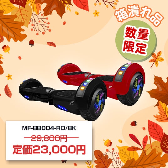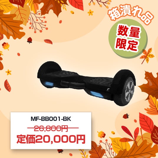 楽天市場「Show!t」では、11月4日(月)20:00~11月11日(月)01:59の楽天お買い物マラソンに参加。期間限定で、MEISTER.Fの電動バランスボード(箱潰れ品)を特別価格でご提供します。外箱潰れはありますが中身は新品です。秋の澄んだ空気の中、ご家族で、キャンプ地などで楽しみながら体験してみてはいかがでしょうか。
