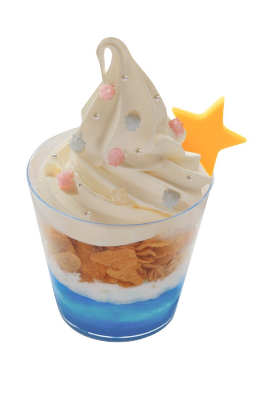 ソーダゼリーのベースにソフトクリームを乗せイルミネーションをイメージしてデコレーションした“映えメニュー”です。
