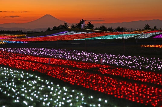 標高約300mに位置する「マザー牧場 山の上エリア」の立地を生かし、富士山のシルエットが浮かぶ夕景や、東京湾越しの東京や横浜の夜景などの景色と、色鮮やかに光り輝くイルミネーションの共演をお楽しみいただけます♪