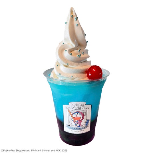 スカイガーデン内の「スカイカフェ」では、イベント限定ドリンク「ドラえもんの絵世界フロート」が登場。紫色のアップルゼリーにブルーライチのカルピスを加え、今回の映画ドラえもんをイメージしたカラーのかわいらしいドリンクです。