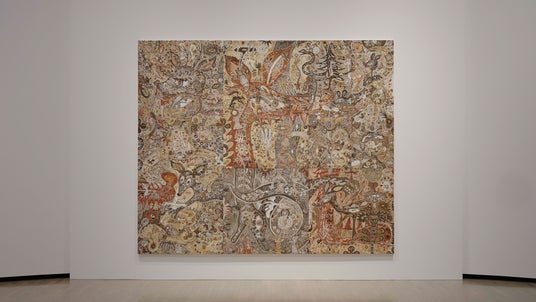 淺井裕介による作品《八百万の森へ》は、2024年7月5日~7日の3日間限定で、無料で特別展示を行いました。9枚のパネルを組み合わせることで生まれる本作は、淺井が指定した7パターンを基本に絵柄を変化させていくことができます。本展では、7月とは異なる絵柄の作品をご覧いただけるとともに、作品の完成までを記録した資料や映像も新しく展示します。